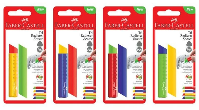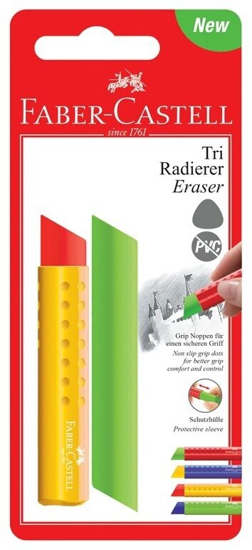 Ластик Faber-Castell Tri (треугольный, 83x12,6x12,3мм, пластиковый держатель) разные цвета, 1шт. (182334)