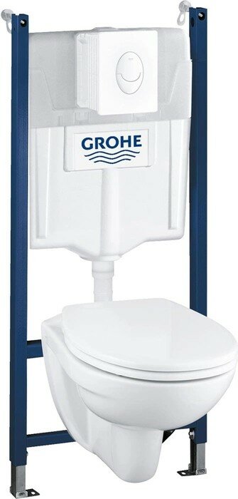 Инсталляция в комплекте с унитазом Grohe Solido 5 в 1 кнопка Skate Air белая 39117000