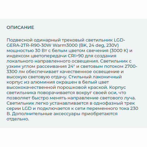 Типы/Трековые системы/Трековые светильники Arlight Трековый светодиодный светильник Arlight LGD-Gera-2TR-R90-30W Warm3000 025950(1)