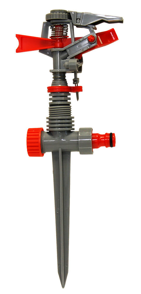 | Описание | Разбрызгиватель импульсный со штуцерной посадкой и пикой для закрепления в почве. Распыляющая головка имеет механизм регулировки угла горизонтального распыления напора воды, обеспечивающий секторный полив. Дополнительно регулируется дальность разбрызгивания до 12 м. Разбрызгиватель предназначен для стационарного полива на дачных участках, в садах и парках. Принцип работы на примере другой модели. |
