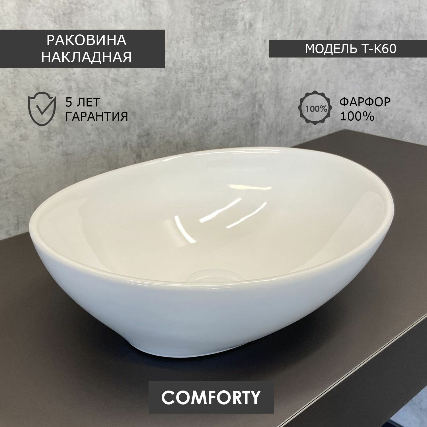 Отзывы на Накладная овальная раковина для ванной 40 см Comforty T-K60 на столешницу фарфор белый