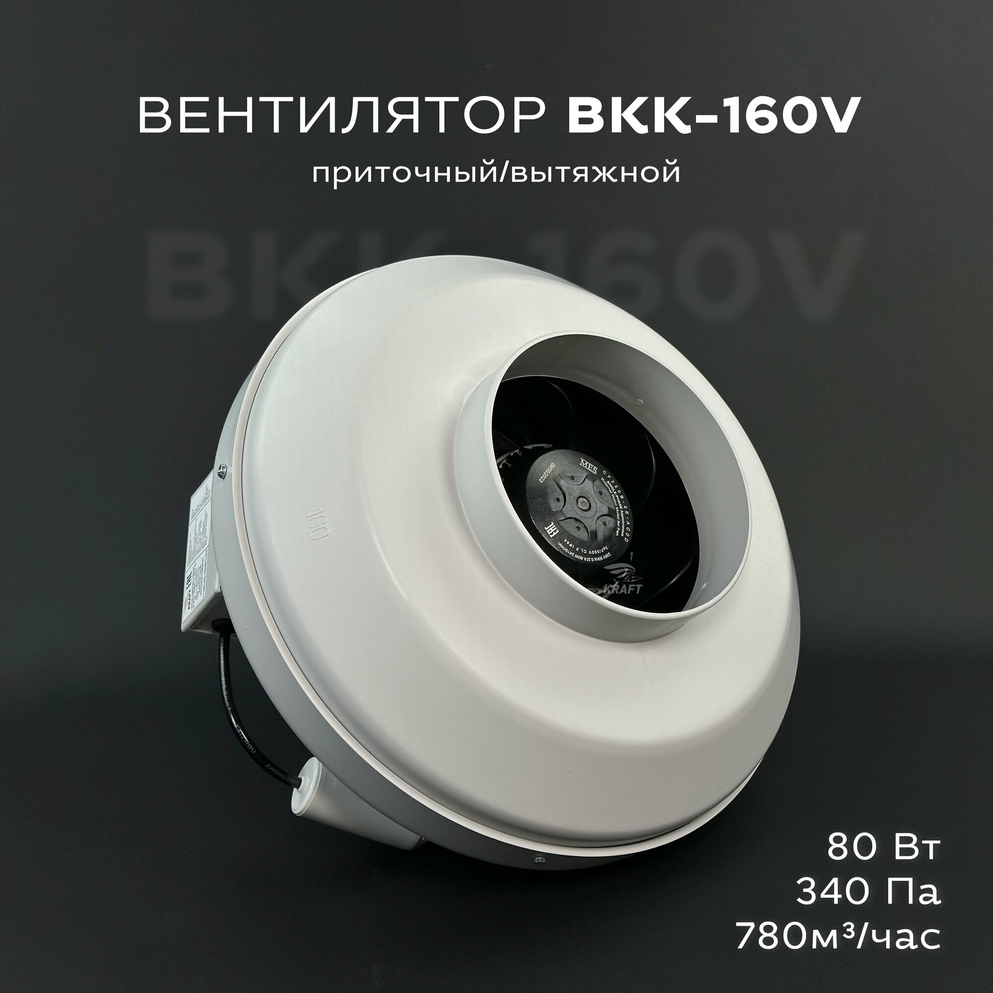 Вентилятор канальный круглый ВКК-160 V, 220В, 780 м3 в час, 340 Па, 80 Вт, IP 44 для круглых воздуховодов диаметром 160 мм, вытяжной или приточный информация: