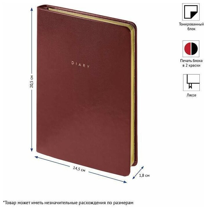 Ежедневник недатированный OfficeSpace A5, 136 листов, кожзам, "Windsor ", коричневый, золотой срез (En5v_25264) информация: