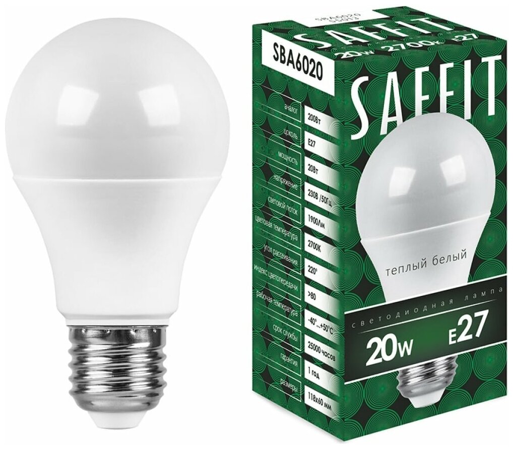 Лампа светодиодная LED 20вт Е27 дневной (SBA6020) информация: