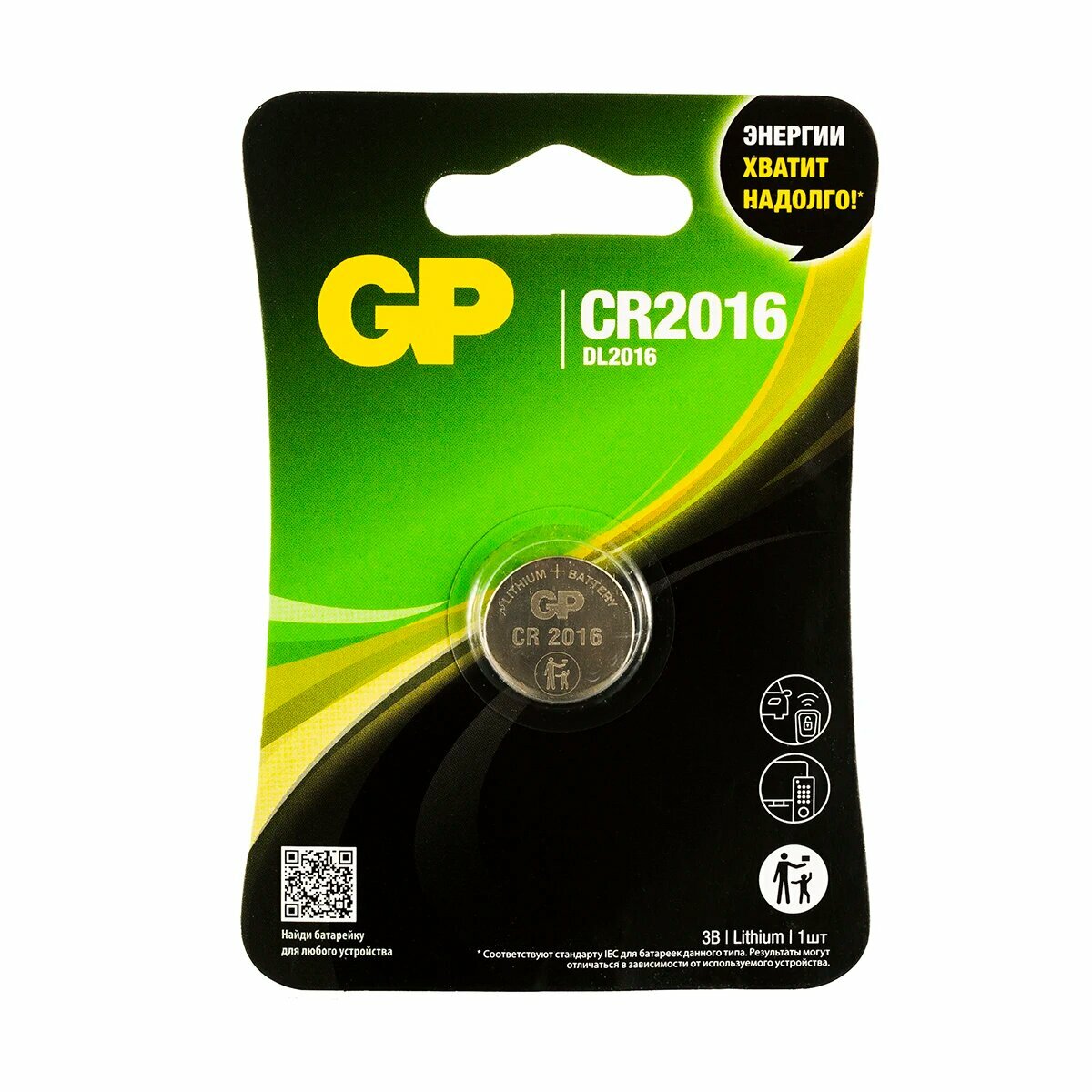 Батарейка GP Lithium, CR2016, литиевая, 1 шт., в блистере (отрывной блок), CR2016-7C5, CR2016-7CR5 (цена за 10 шт)