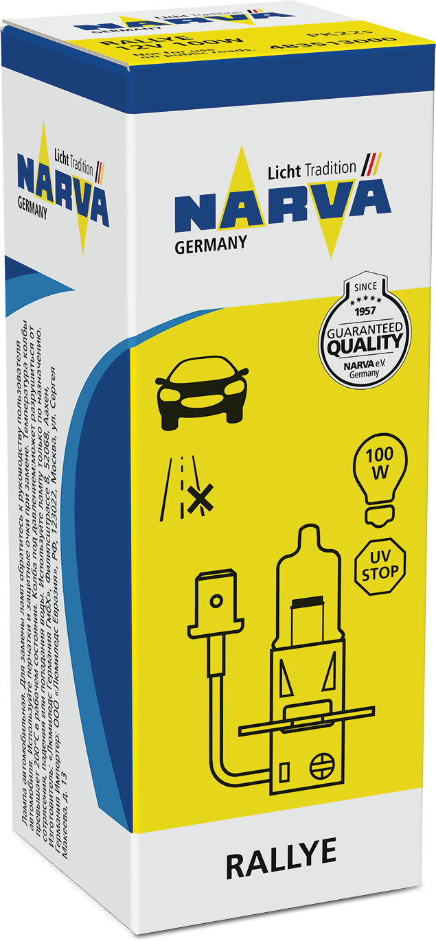 NARVA Лампа 12V H3 100W NARVA Rally 1 шт. картон 48351 1шт