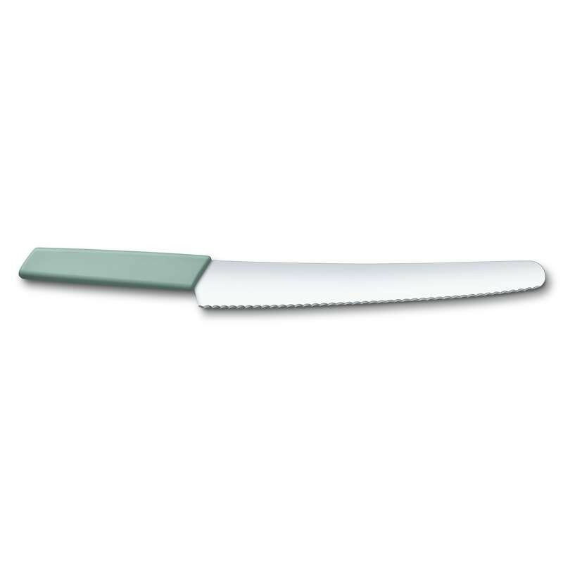 Нож кухонный Victorinox Swiss Modern, для хлеба, 260мм, заточка серрейтор, стальной, зеленый [6.9076.26w44b]
