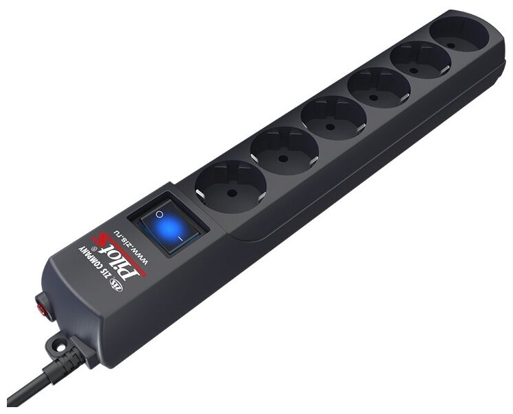 Сетевой фильтр Pilot S графит 10 метров, 6 розеток (одна розетка без заземления) максимальный ток нагрузки 10А