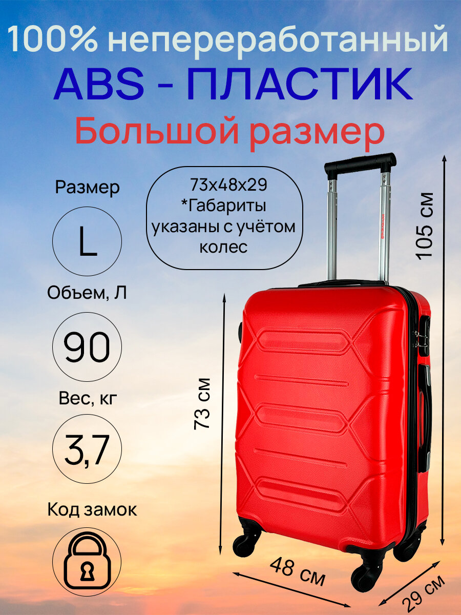Чемодан, большой размер (L) 90 литров, Габариты: 73x48x29, кодовый замок, 4 колеса, Цвет: Красный информация: