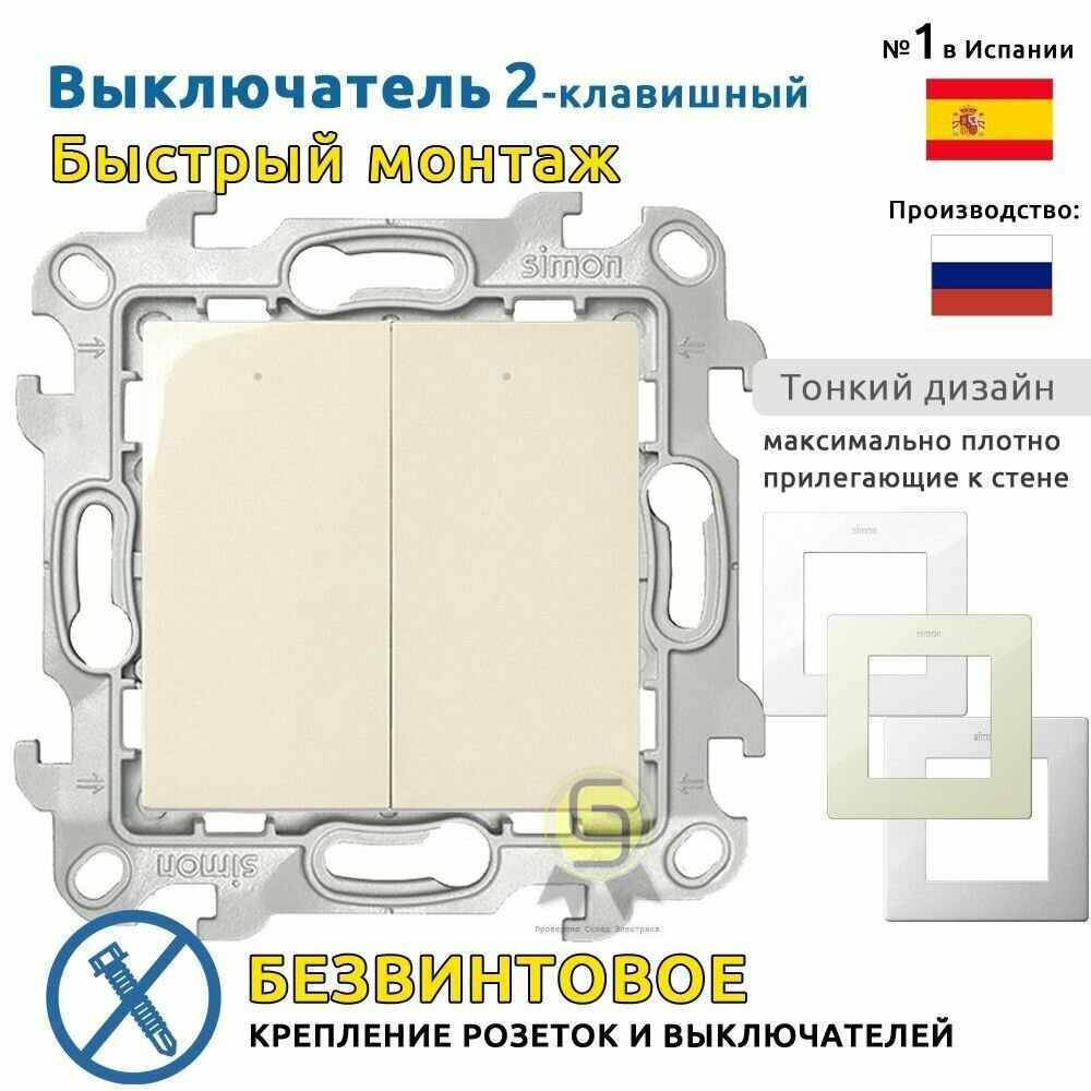 Simon 24 Слоновая Кость Двухклавишный кнопочный выключатель 10A 250В, Simon, арт.2410151-031
