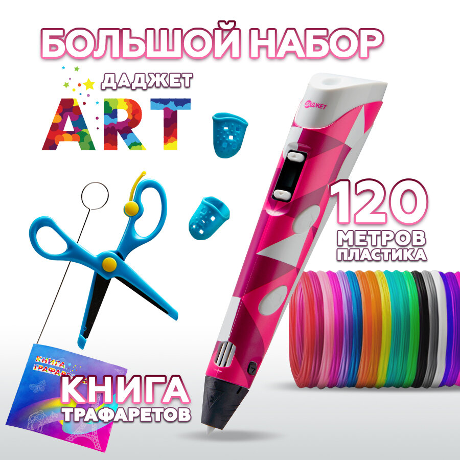 10 цен на 3d ручка Даджет Art с набором пластика PLA 120 м (24 цвета по 5 метров) и трафаретами, для детей творчество