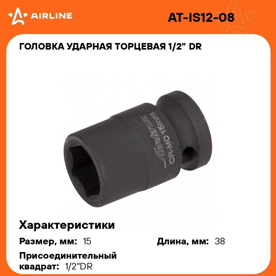 Отзывы на Головка ударная торцевая 1/2" DR шестигранная 15мм L=38 мм AT-IS12-08 AIRLINE