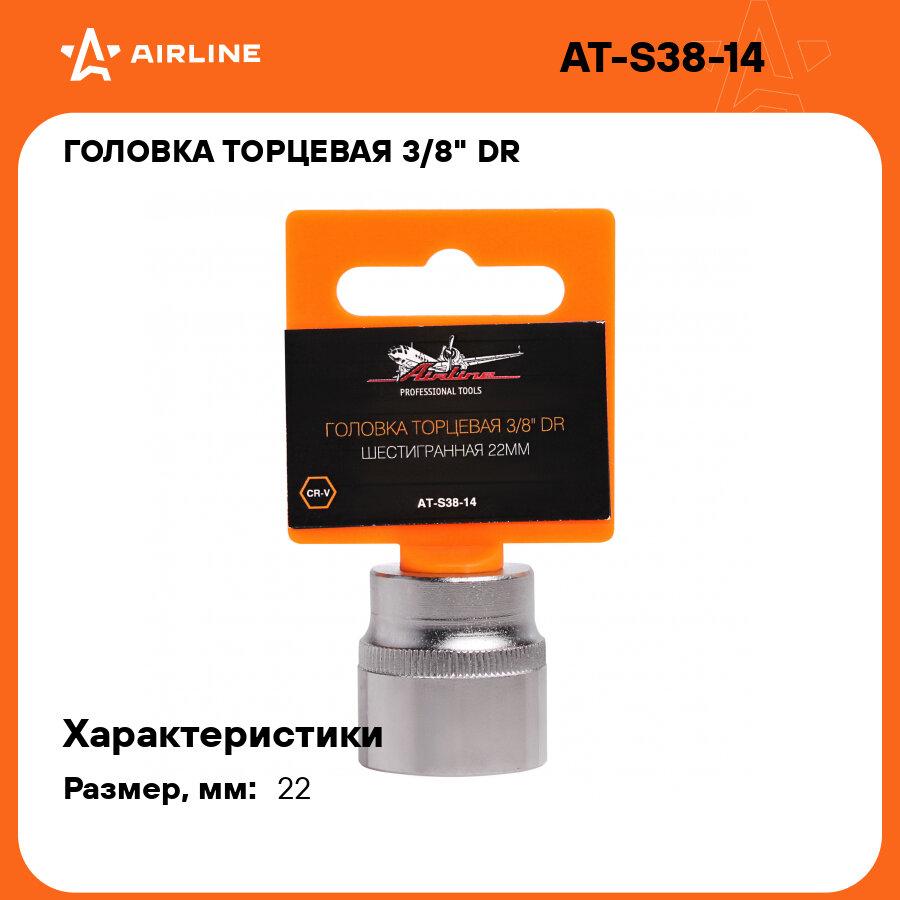 Головка торцевая 3/8" DR шестигранная 22мм пласт. подвес AT-S38-14 AIRLINE информация: