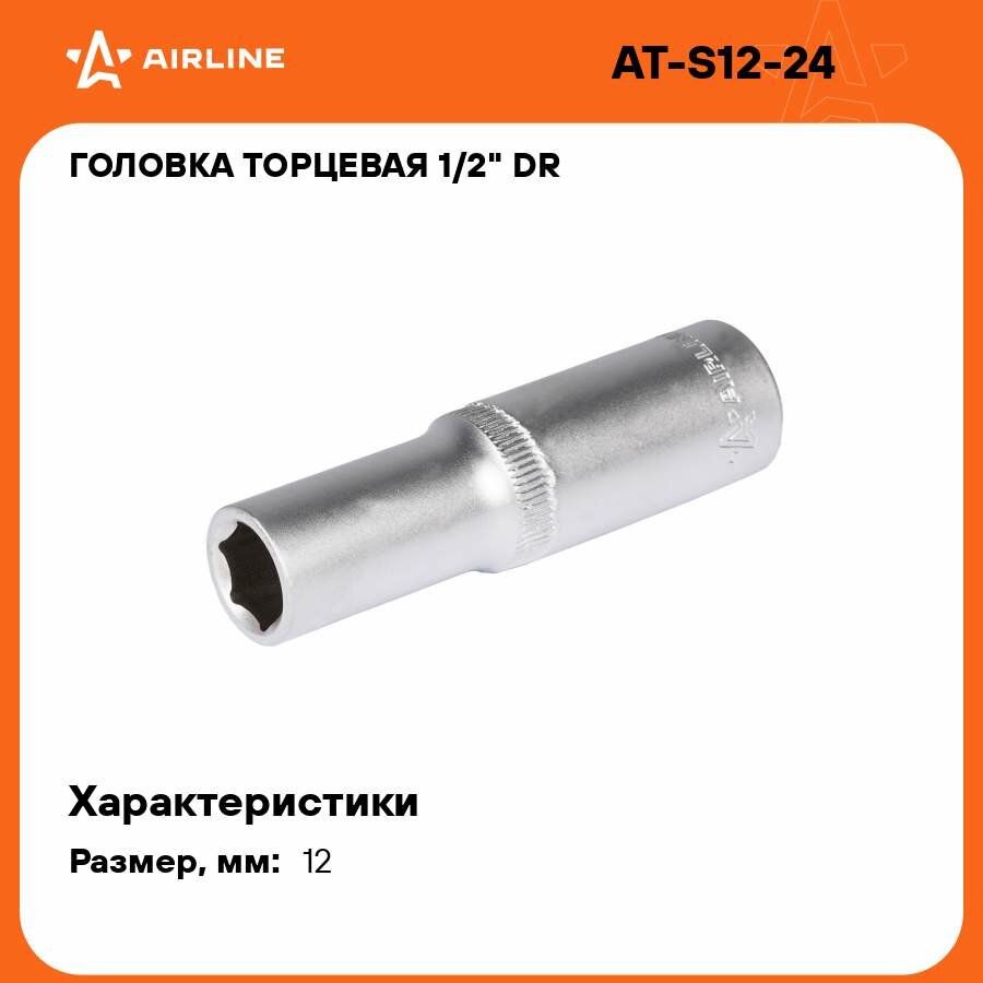 Головка торцевая 1/2" DR шестигранная 12 мм, глубокая, Airline ATS1224