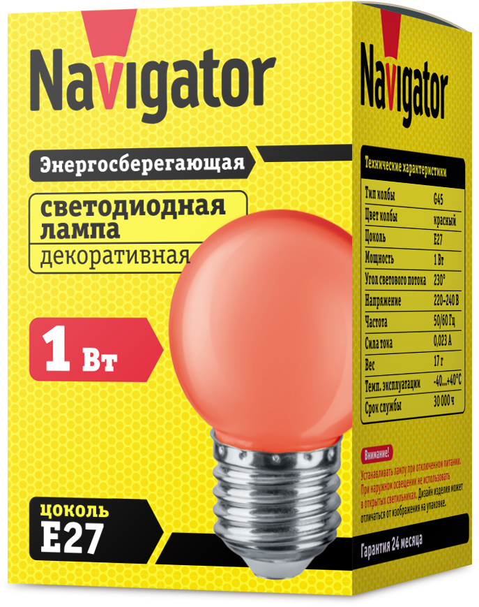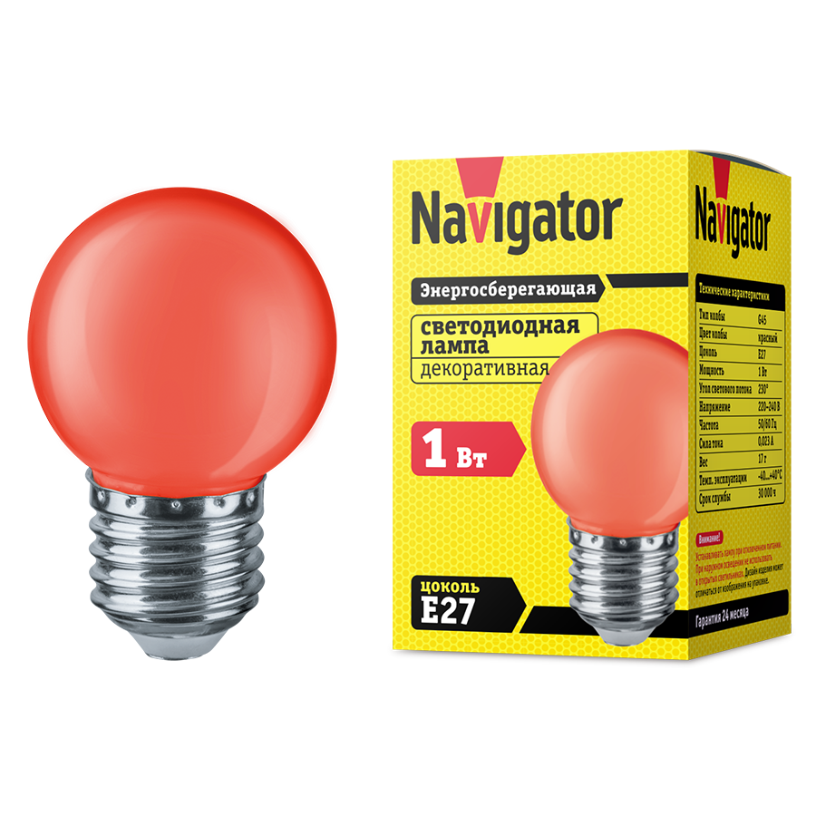Лампа светодиодная Navigator 71 827, шар, 1 Вт, E27, красный свет, упаковка 10 шт. информация: