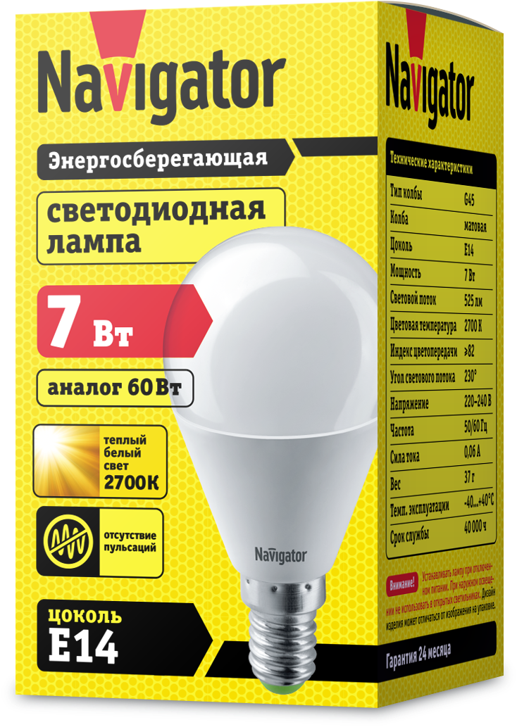 Отзывы на Лампа светодиодная Navigator 94 466, 7Вт, цоколь Е14, шар, теплый свет 2700К, упаковка 10 шт.