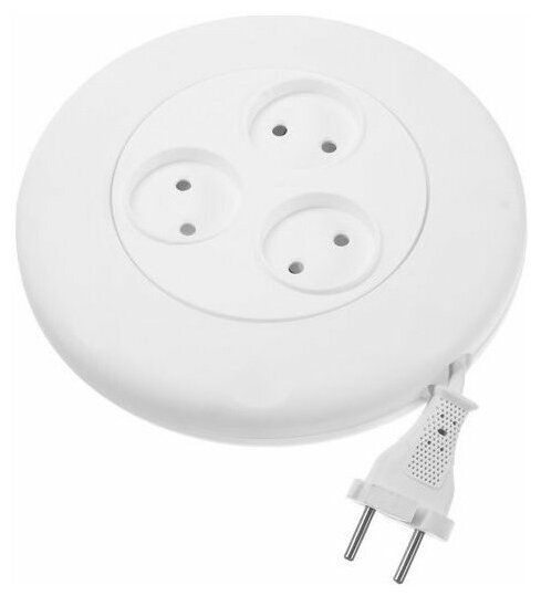 Удлинитель 3 гнезда 3 метра 10А/2,2кВт, б/з, круглый, белый (SBE-10-3-03-W)/40