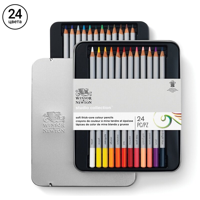 10 цен на Набор цветных карандашей Winsor&Newton 24 цвета, в металлической коробке (490013)