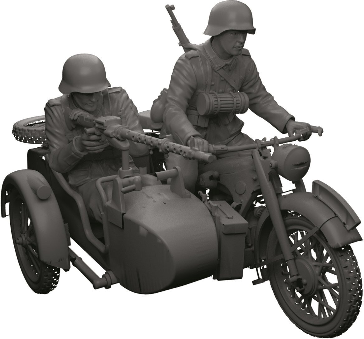 Сборная модель ZVEZDA Немецкий мотоцикл с коляской и экипажем БМВ Р-12 (3607)