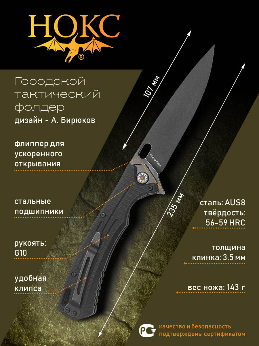 Отзывы на Нож складной нокс Майор (328-589406) в подарочной коробке, городской тактический "фолдер", сталь AUS8