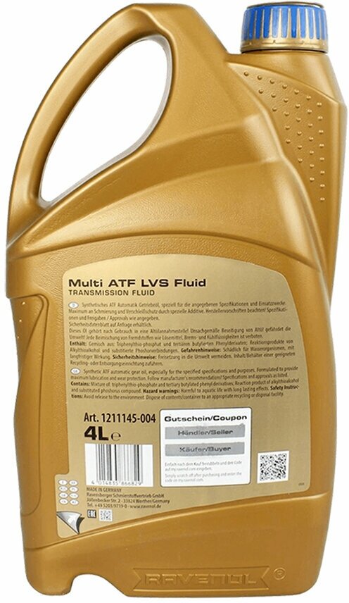 Отзывы на Масло трансмиссионное Ravenol Multi ATF LVS Fluid трансмисионное синтетическое 4 л 4014835866829