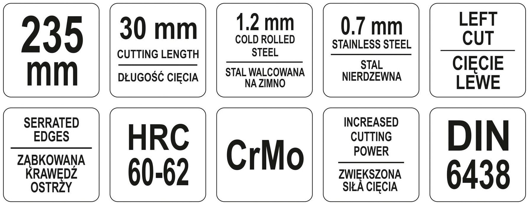Отзывы на Ножницы по металлу YATO профи левые 235 мм, CrMо, HRC 60-62, Тайвань, YT-1915