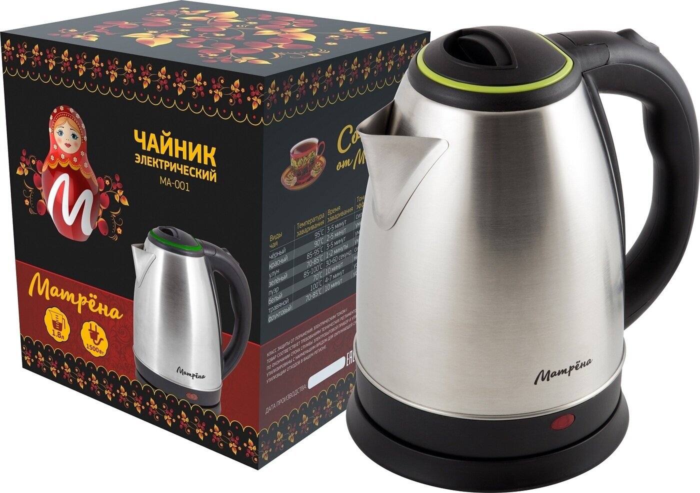 Матрена МА-001 чайник электрический дисковый, 1.8л, 1500Вт, нержавеющая сталь (005456)