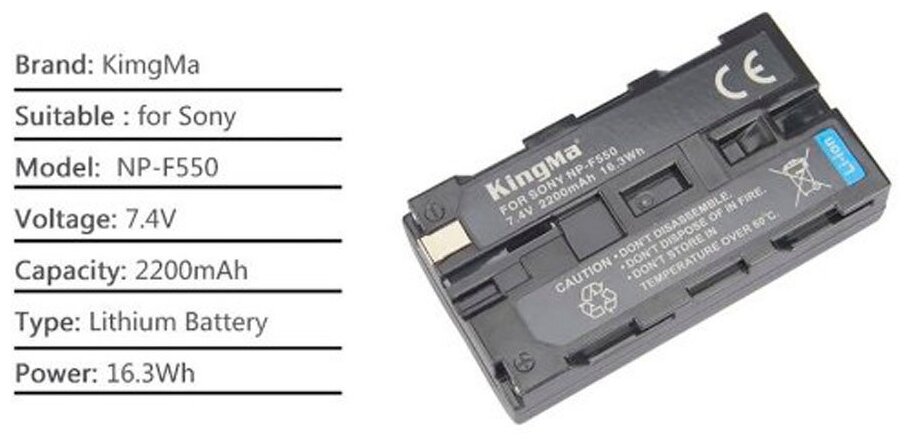 Аккумулятор KingMa для Sony NP-F550 2200mAh информация: