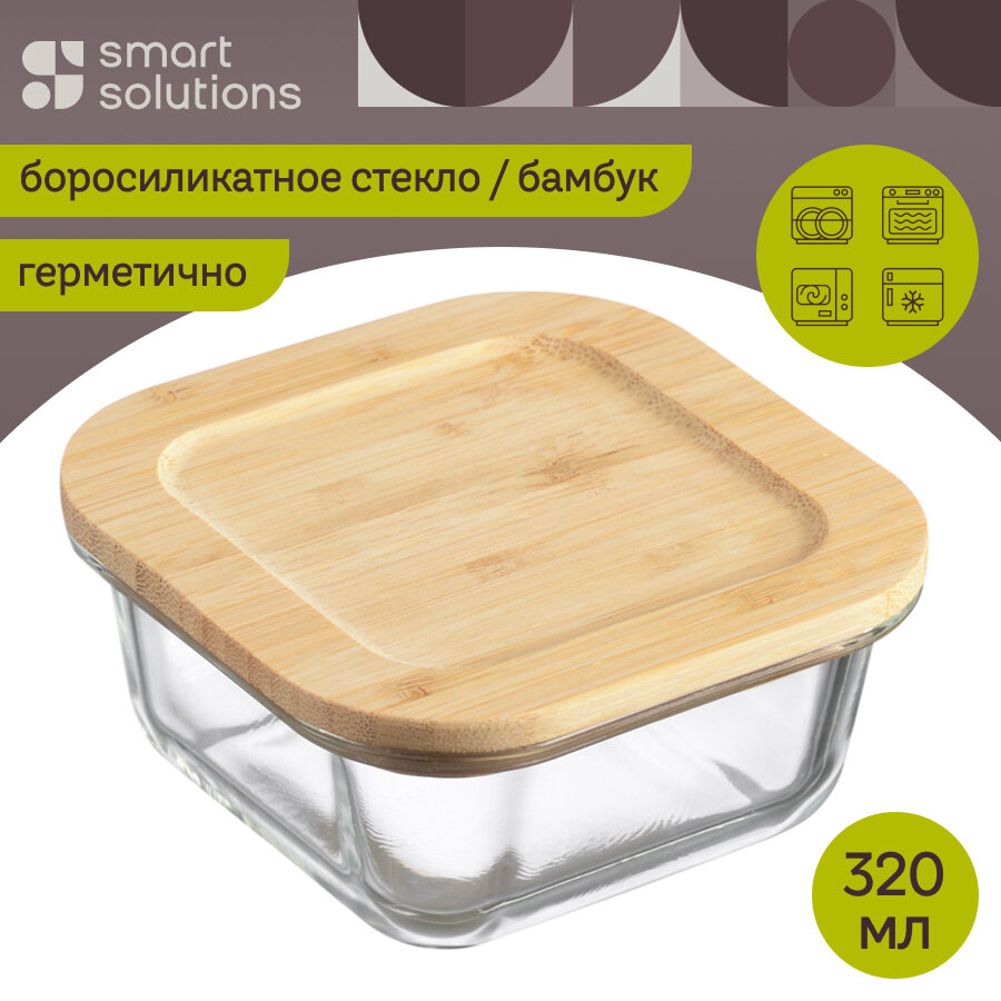 Контейнер 320 мл для хранения продуктов и запекания еды стеклянный с крышкой из бамбука Smart Solutions LBA320SQ информация: