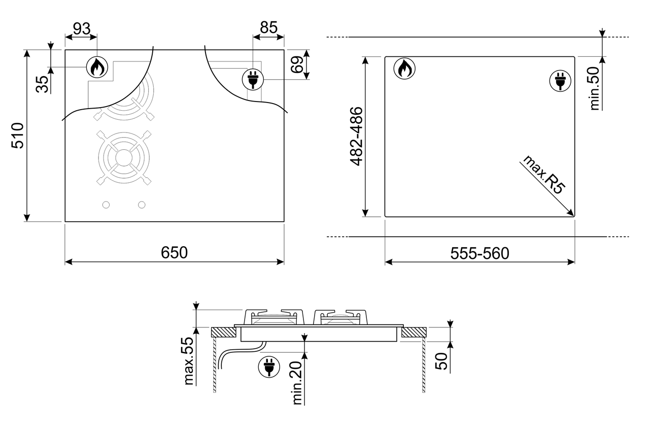 Панель варочная комби (газ + индукция) Smeg PM3643D Чёрный, 65 см, прямой край 201 990 ₽