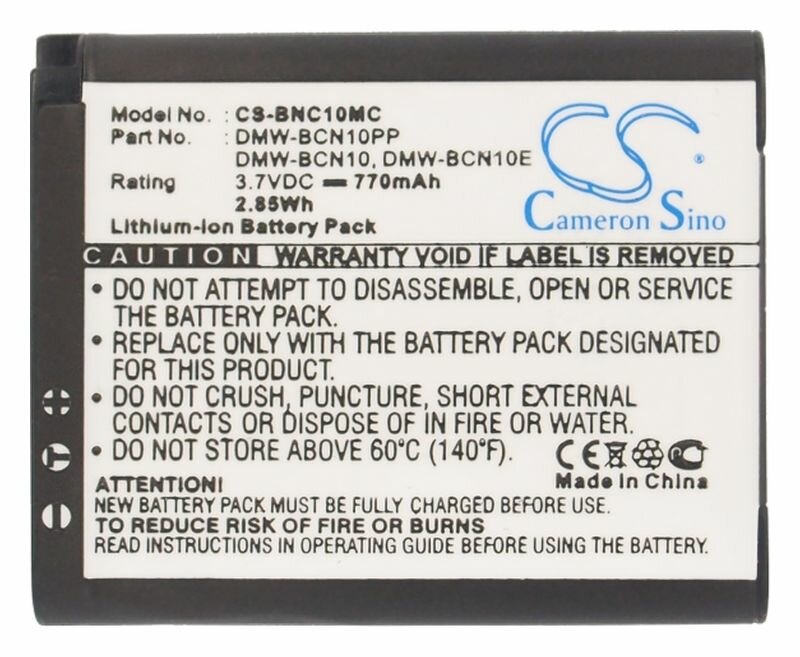 Аккумулятор Cameron Sino CS-BNC10MC для Leica C, Panasonic Lumix DMC-LF1 информация: