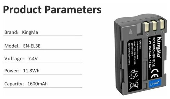 Аккумулятор для Nikon EN-EL3e KingMa 1600mAh информация: