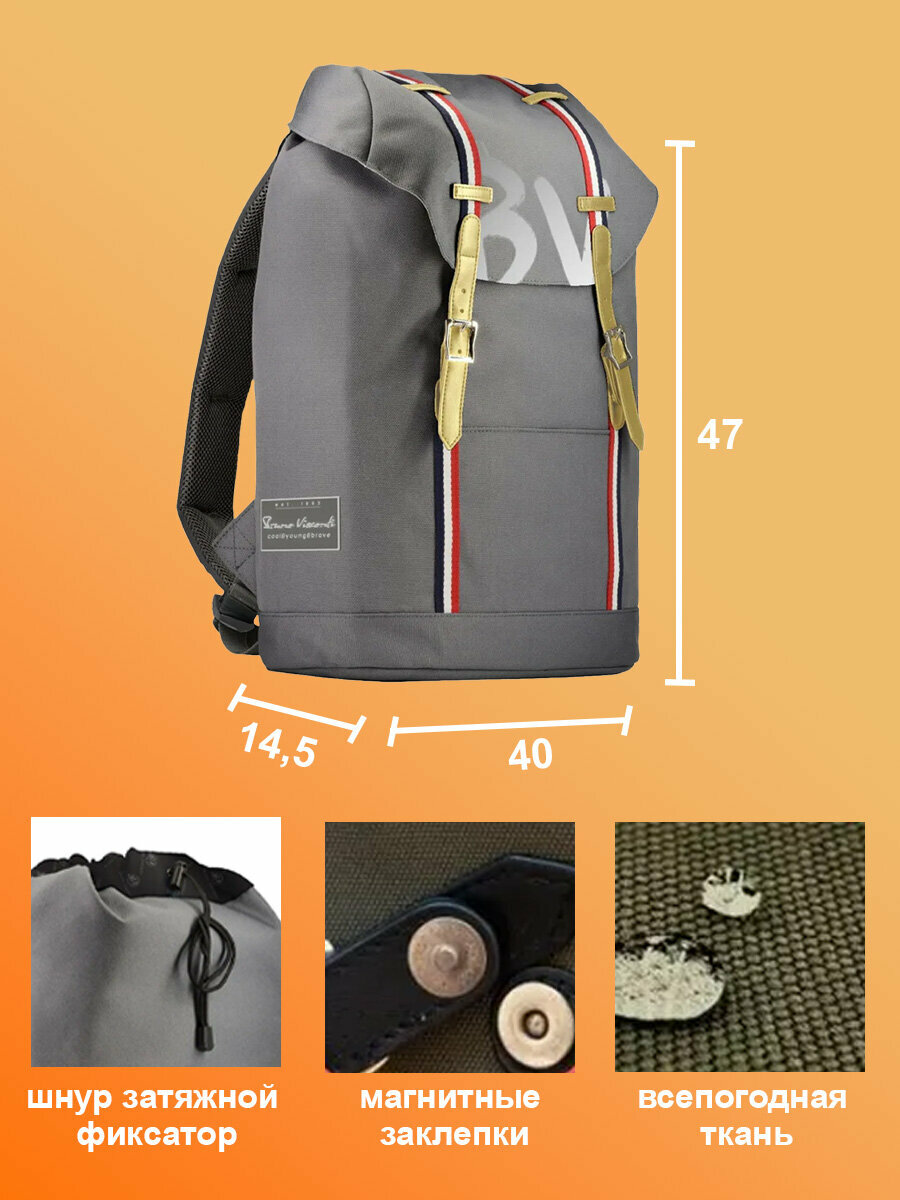 10 цен на Рюкзак BrunoVisconti городской серый "BV", Арт. 12-011-009/05