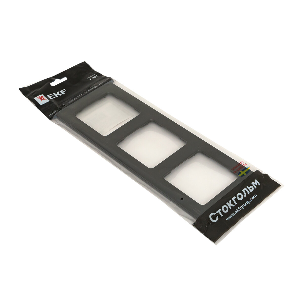 Рамка электроустановочная 3-местная металлическая Стокгольм, черная, EKF PROxima 1 123 ₽