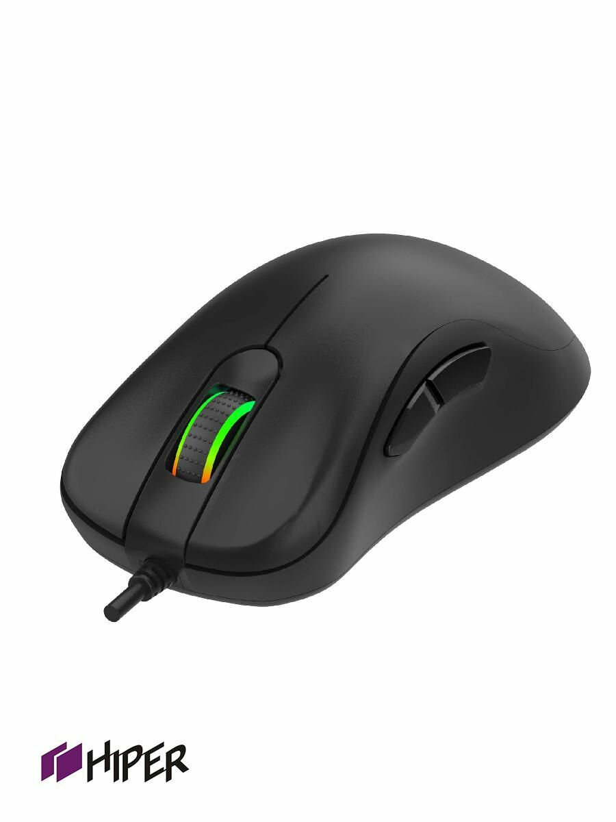 Мышь компьютерная HIPER STALKER, черная, 5 кнопок, 4000 dpi, RGB подсветка