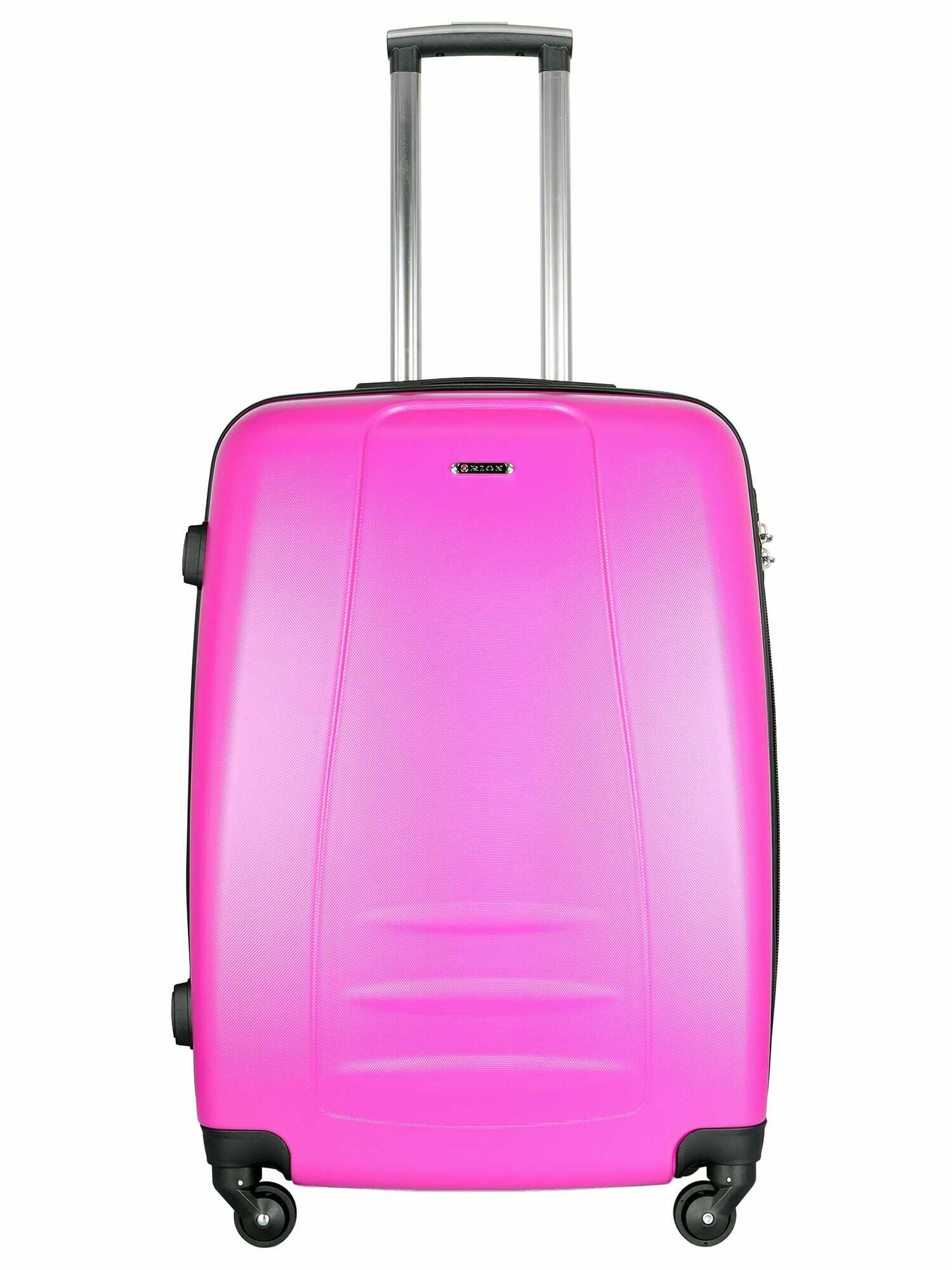 Чемодан Рион+ (RION+) R416, Пластик, 65 см, 52 литра, 4 колеса, M (56-70 см), усиленный толстый пластик, розовый