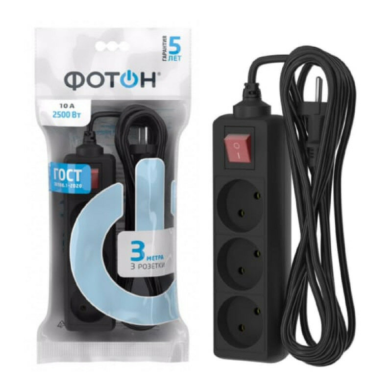 10 цен на Сетевой фильтр фотон 3м 3роз. 10-33S, 10А, с выкл., Черный