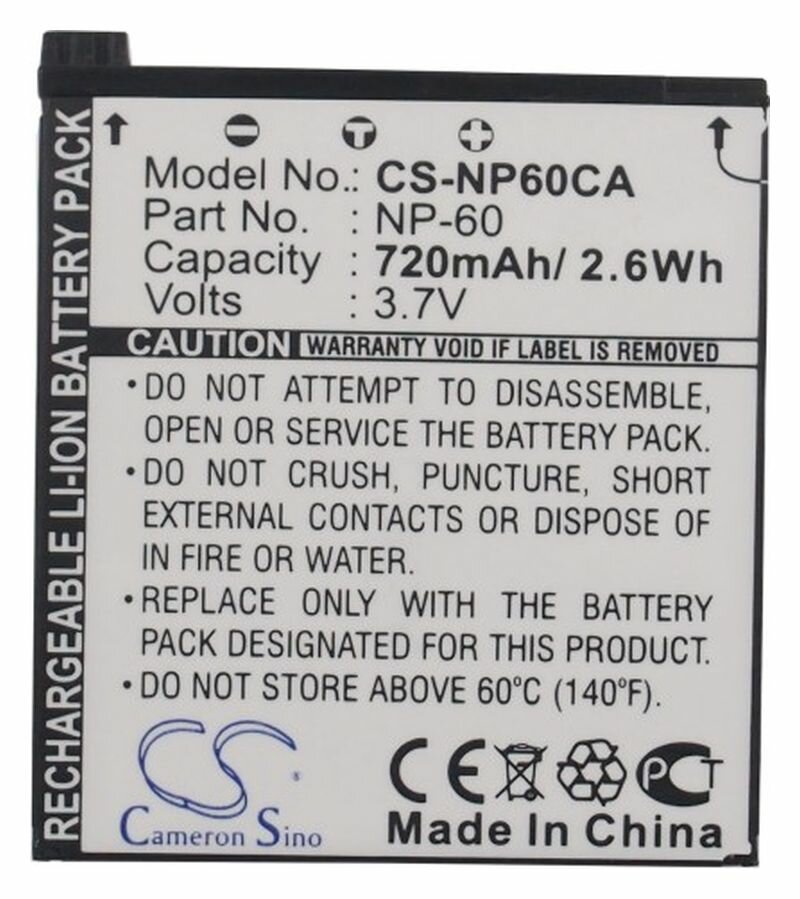Аккумулятор Cameron Sino CS-NP60CA для Casio Exilim EX-S10, Z9, Z80, Zoom EX-Z19, Z20, Z85 информация: