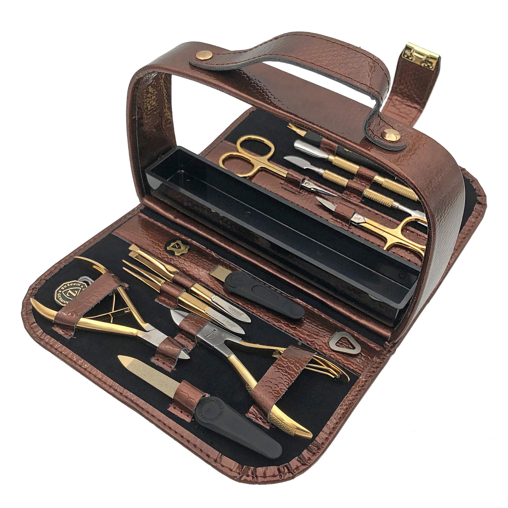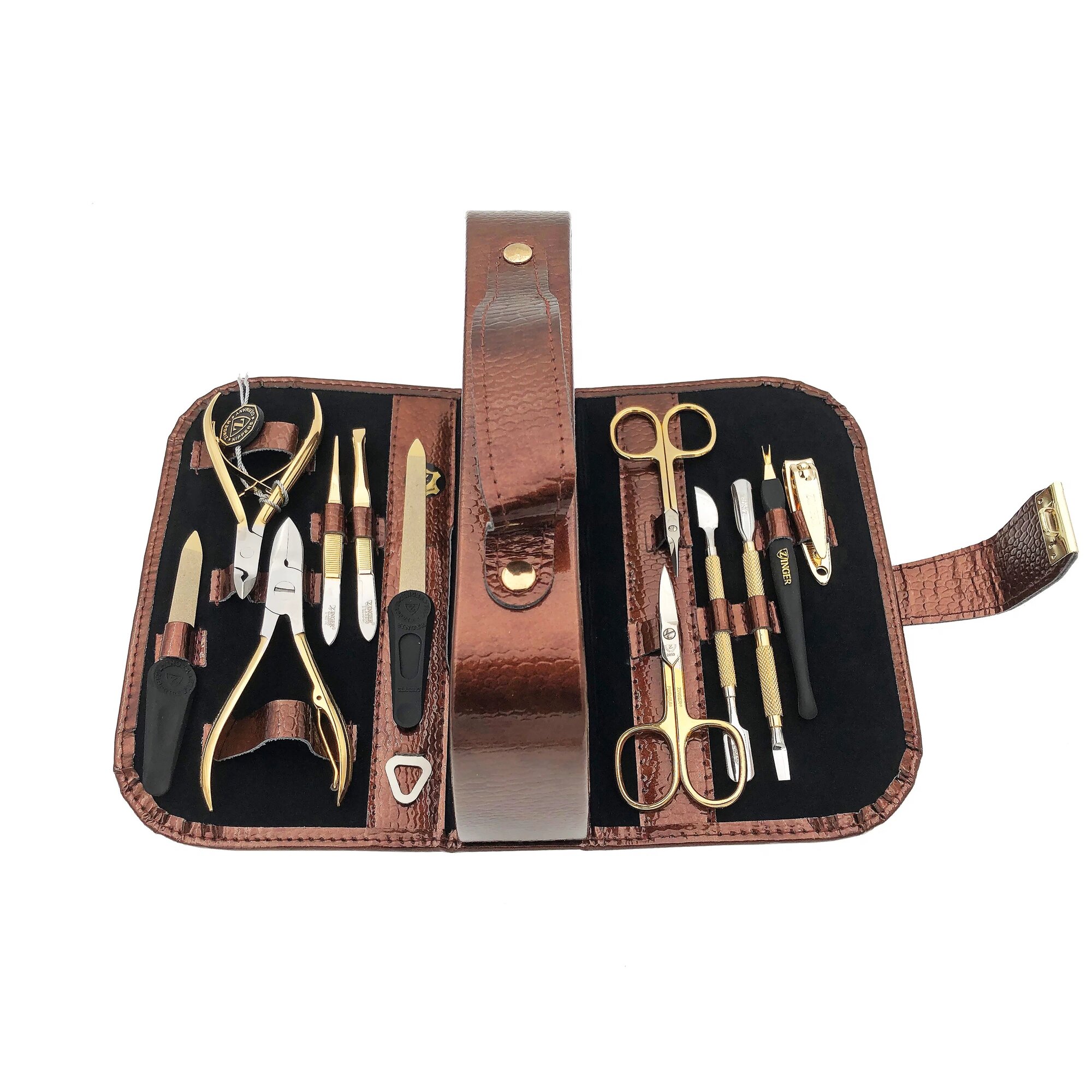 10 цен на Маникюрный набор Zinger MS-1101 BG, 12 предметов, позолоченный/коричневый глянцевый