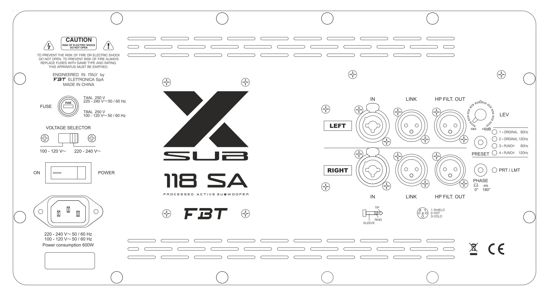 FBT X-SUB 118SA активный сабвуфер, 18", 1200 Вт, 38Гц-120Гц, SPL 136 дБ, DSP c 4-мя пресетами информация: