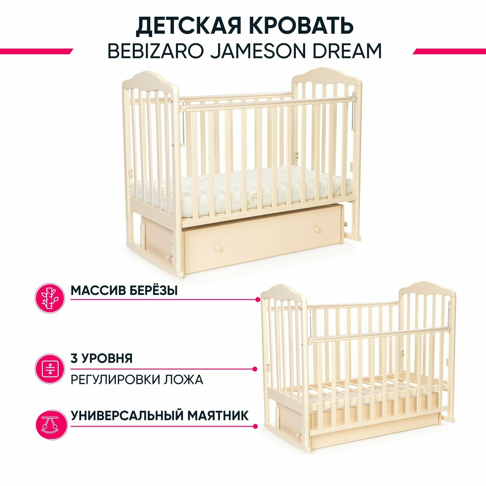 10 цен на Кровать BEBIZARO JAMESON "DREAM" VANILLA Универсальный маятник с ящиком