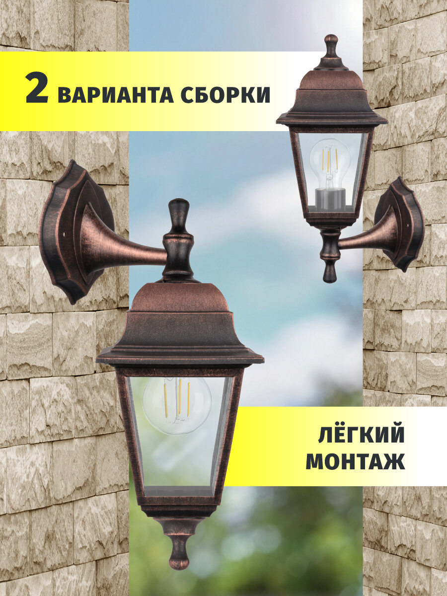 10 цен на Светильник садовый настенный Navigator 80 490, 4 грани, черный под медь, цоколь E27, IP44
