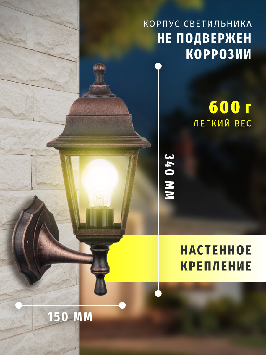 Отзывы на Светильник садовый настенный Navigator 80 490, 4 грани, черный под медь, цоколь E27, IP44