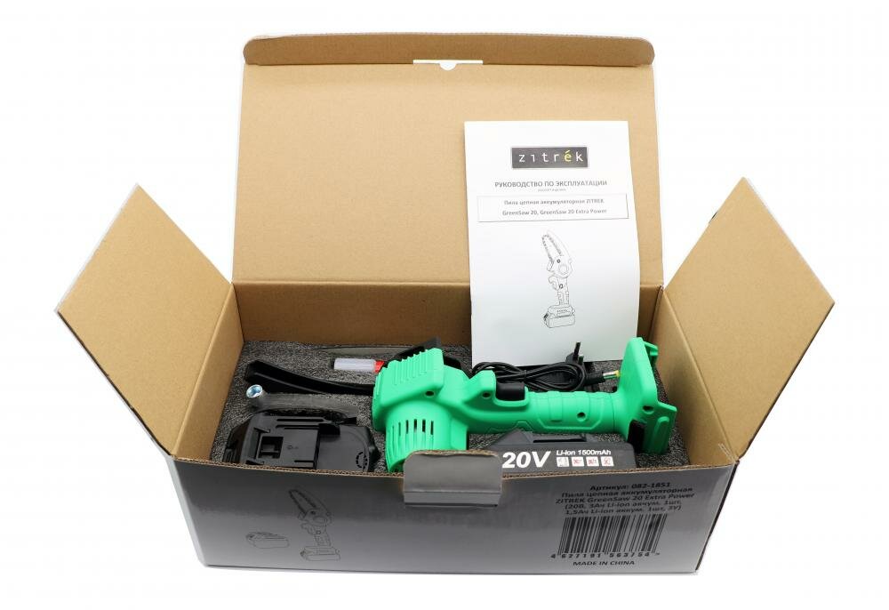 Пила цепная аккумуляторная бесщеточная Zitrek GreenSaw 20V (20В, 4,0Ач Li-ion аккум. 1шт, ЗУ)