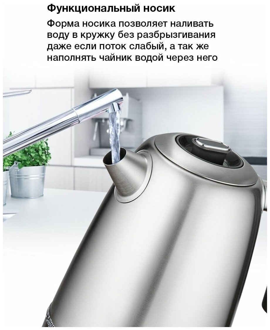10 цен на Электрический чайник Hyundai 1.7л. 2200Вт серебристый матовый/черный (корпус: нержавеющая сталь)