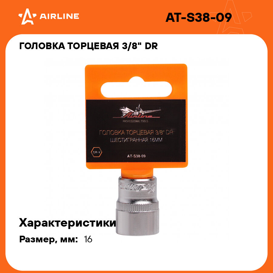 Головка Торцевая 3/8" Dr Шестигранная 16Мм AIRLINE арт. AT-S38-09