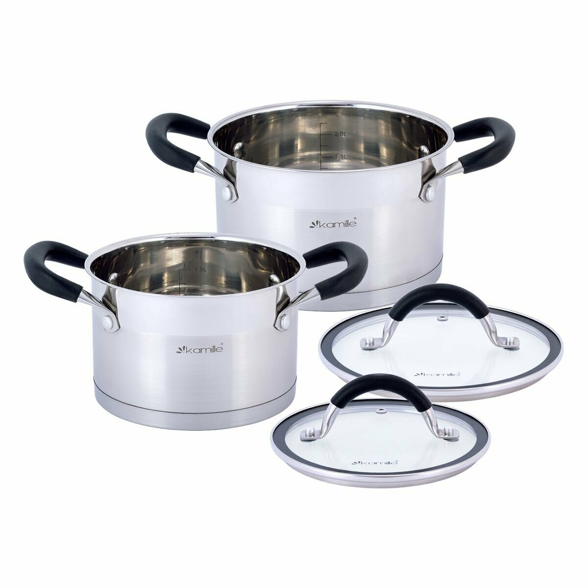 Набор кастрюль 2,0 л; 2,7 л. из нержавеющей стали Kamille KM-5751 с силиконовыми вставками на ручках (5751 / серебристый) информация: