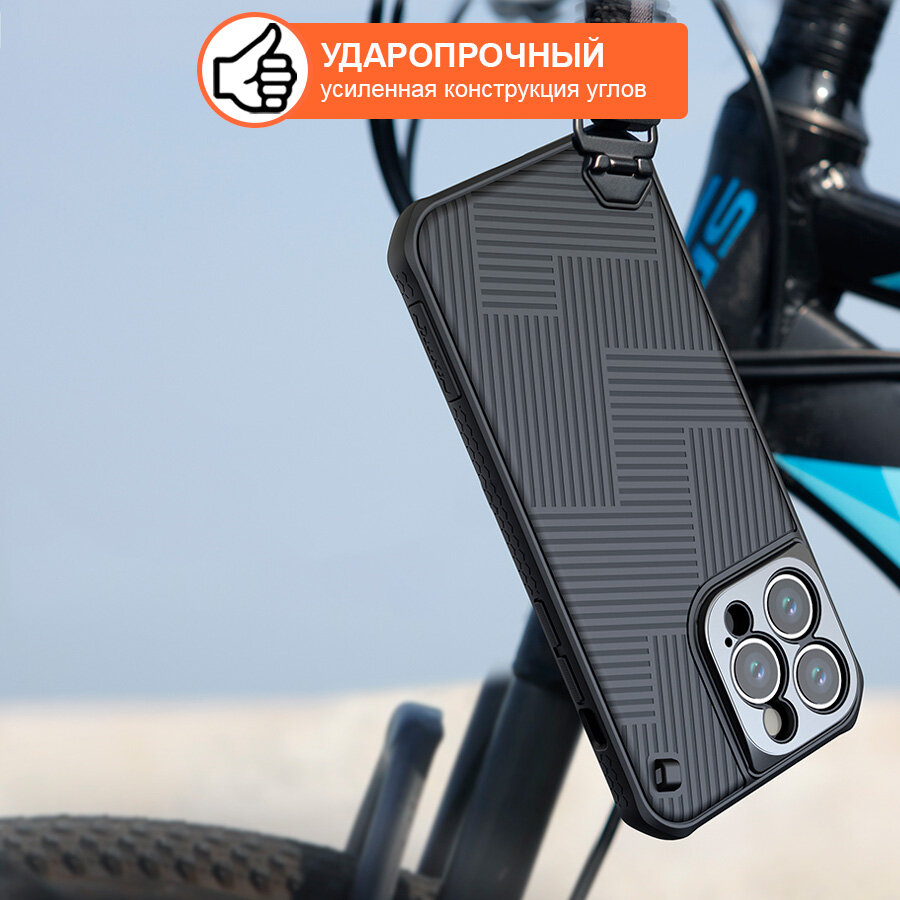Чехол для iPhone 14 Pro Max MagSafe, противоударный с усиленными углами, с ремешком, черный, Nillkin информация: