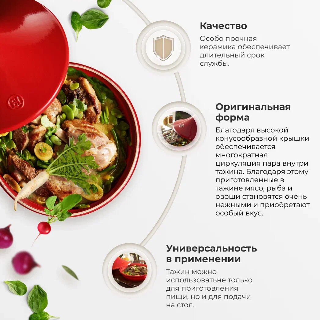 10 цен на Тажин 3 литра, 32 см Emile Henry керамический, цвет: Гранат