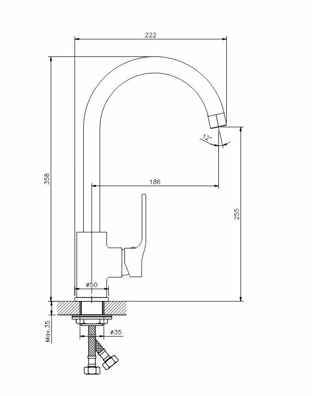 Смеситель для кухни с подключением к фильтру с питьевой водой из нержавеющей стали SUS304 Calorie CAL50116-3